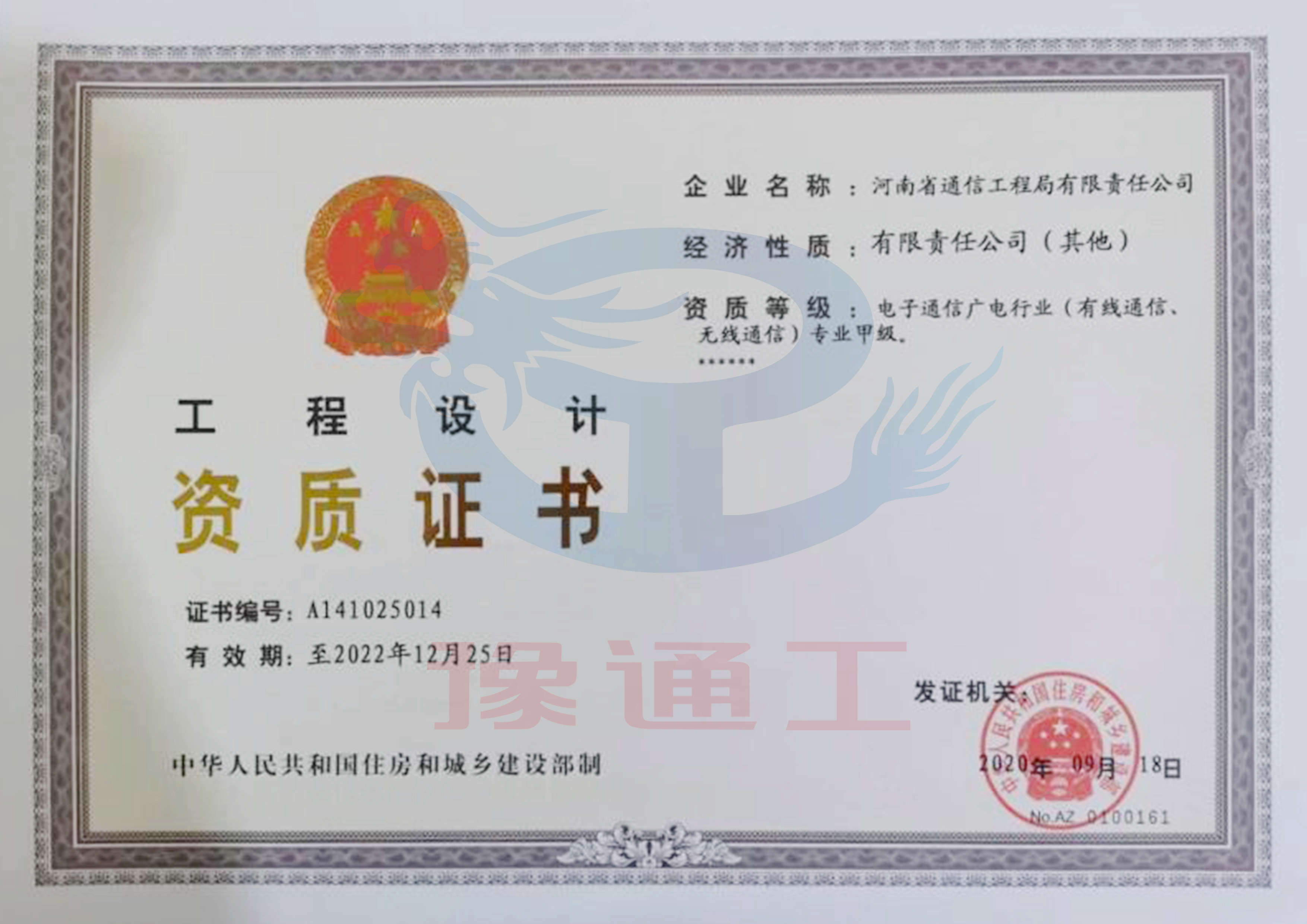電子通信廣電行業(yè)(有線通信、無線通信)專業(yè)設計甲級